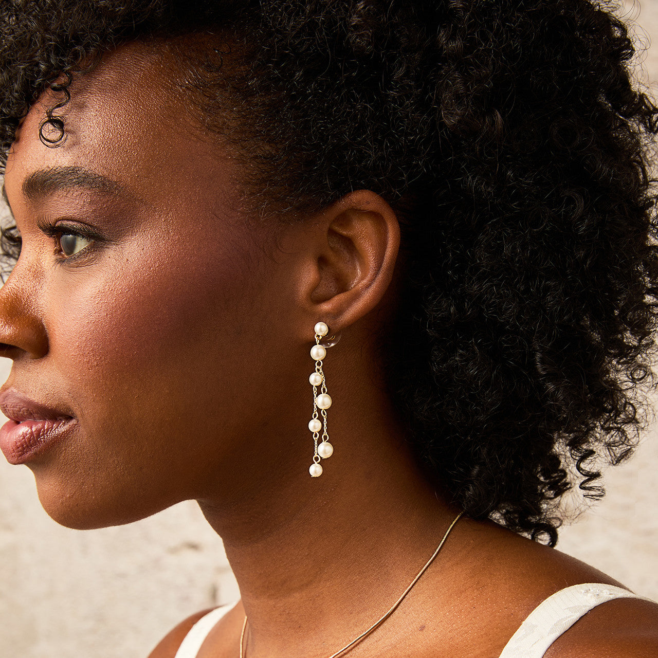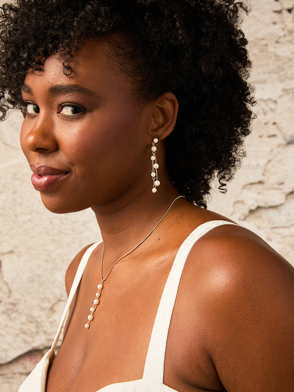Description: Rhodium plated pearl bead necklace with matching earrings