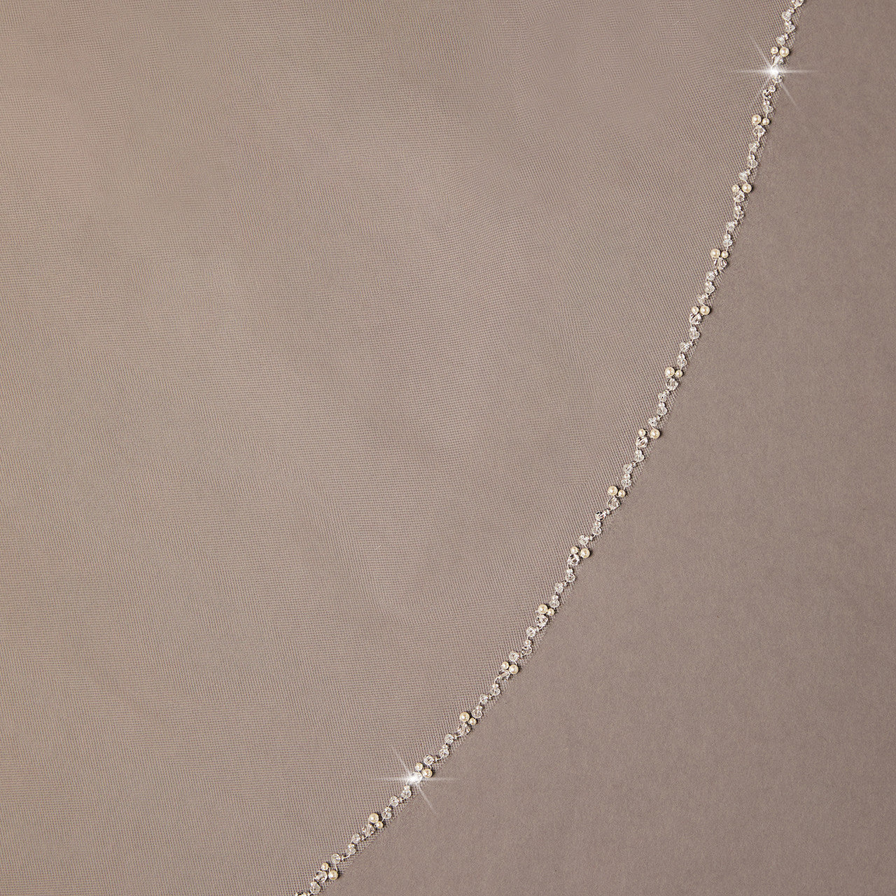 Description: English tulle with clear crystal, sequin, and pearl beaded edge