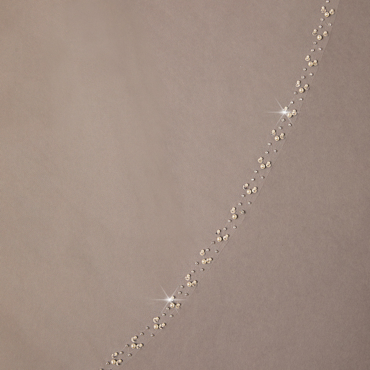 Description: English tulle with pearl, clear sequin, and beaded edge