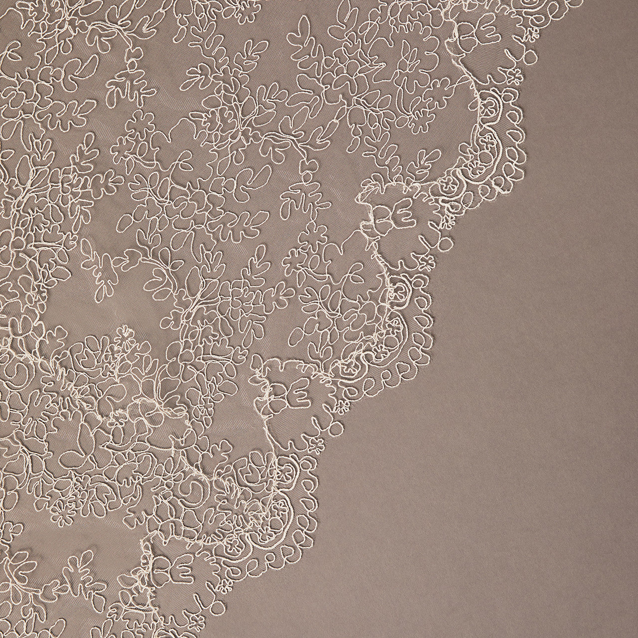 Description: Chantilly corded lace with scalloped edge
